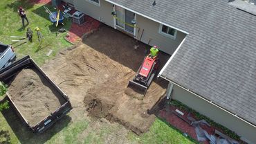 Out in East Lansing, MI, Apple transformed an existing old patio to a now new updated patio. We designed a new whole concrete patio for our client that was tired of not being able to enjoy their outdoor living space. To complete this project, we also installed a fresh pair of stairs to tie it all together. As well as functional drainage to help with the longevity of this patio.
